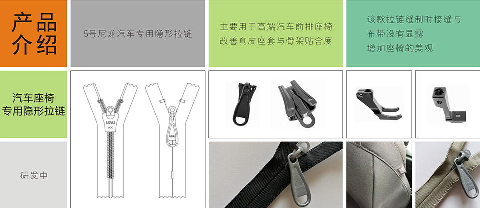 我們提供汽車(chē)專(zhuān)用拉鏈、標(biāo)識(shí)扣、標(biāo)識(shí)嘜、粘扣帶/刺毛帶,織帶/松緊帶,塑料扣件等其他汽車(chē)內(nèi)飾、汽車(chē)座椅系統(tǒng)部件。